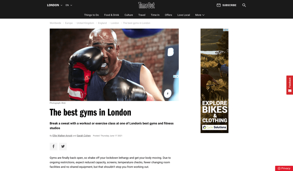 TimeOut: The best gyms in London