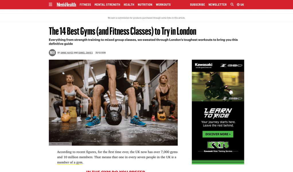 Men’s Health: The best gyms in The 14 Best Gyms (and Fitness Classes) to Try in London